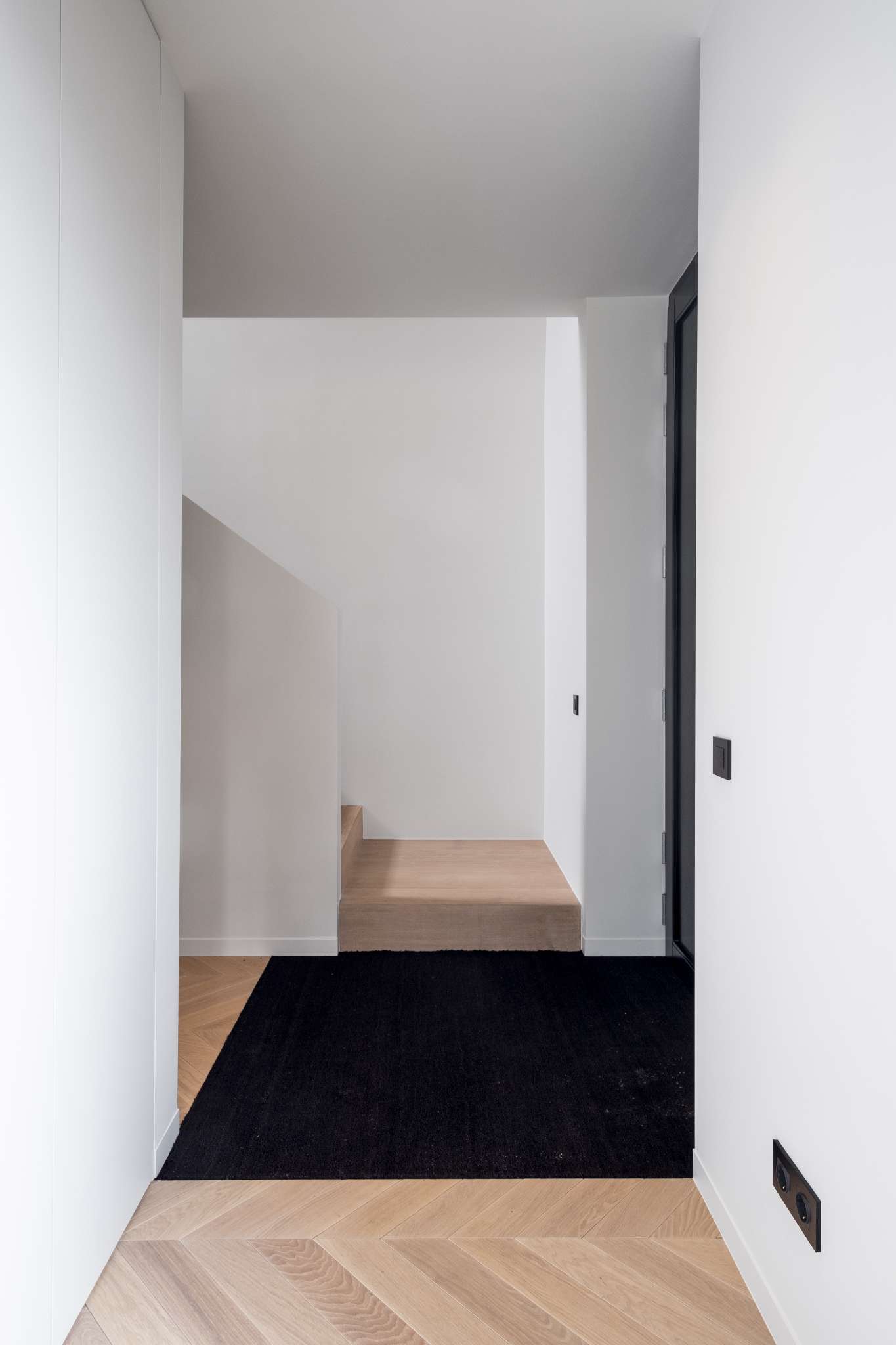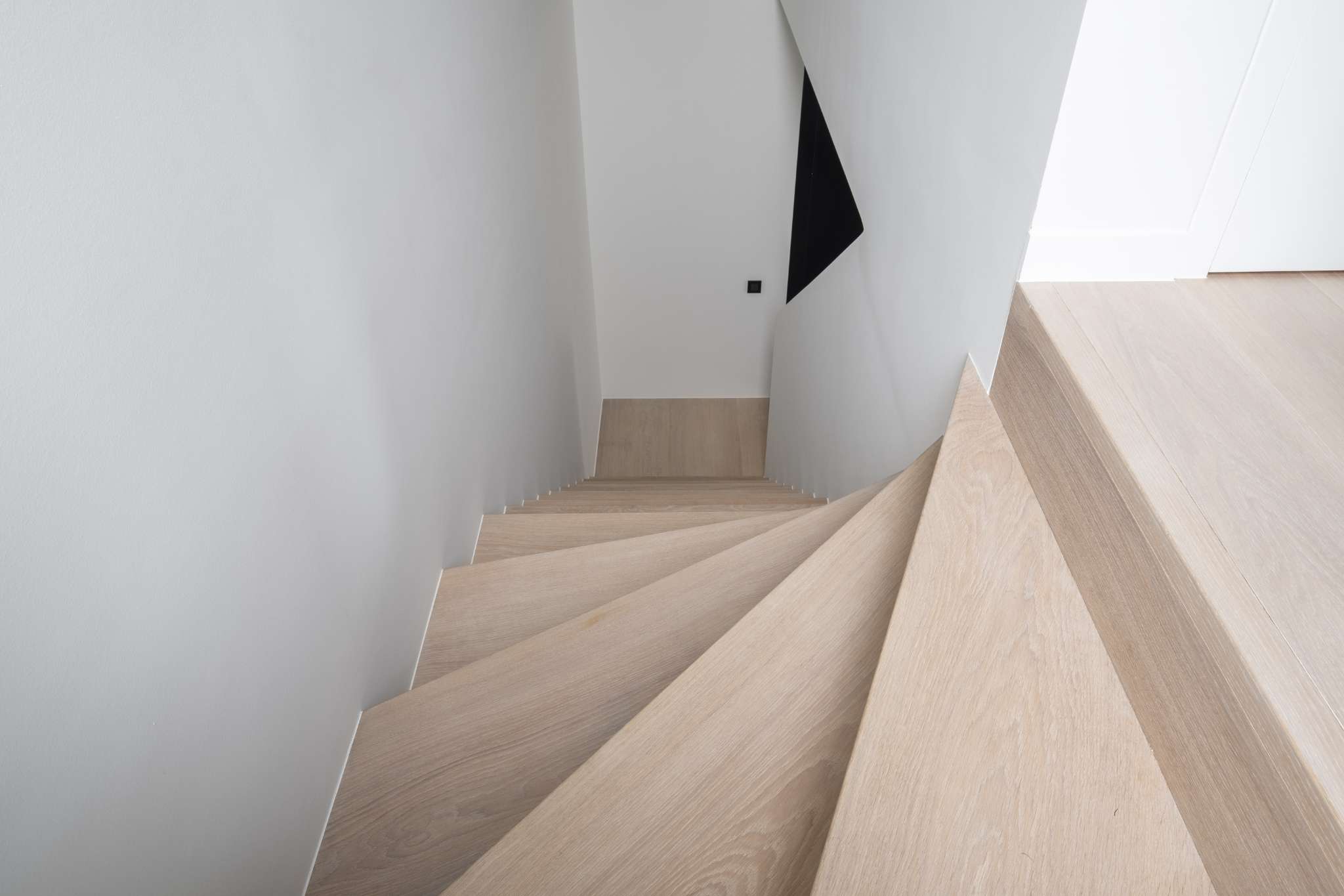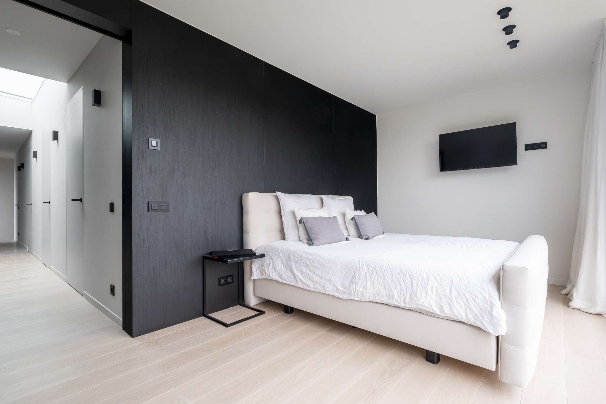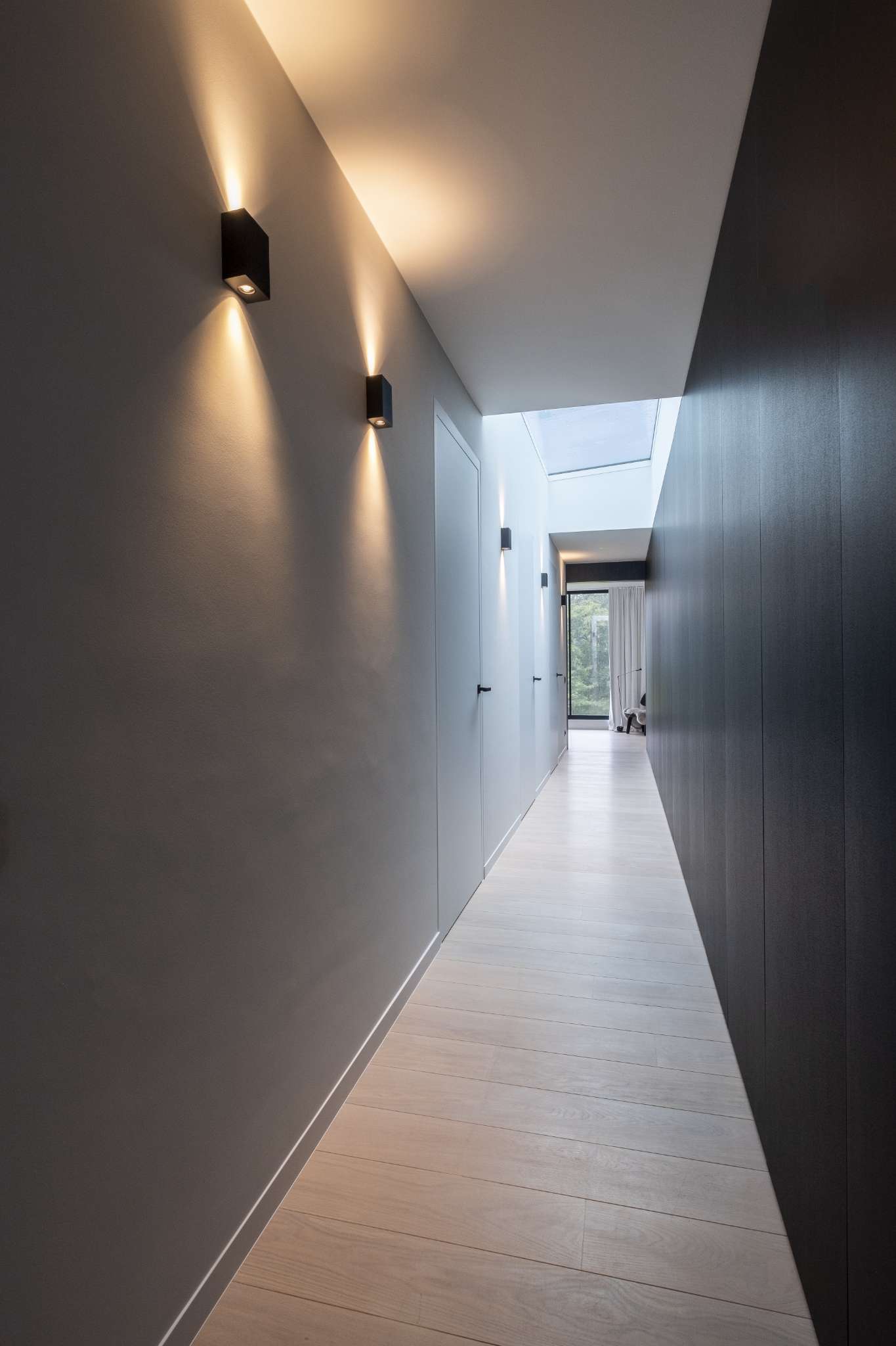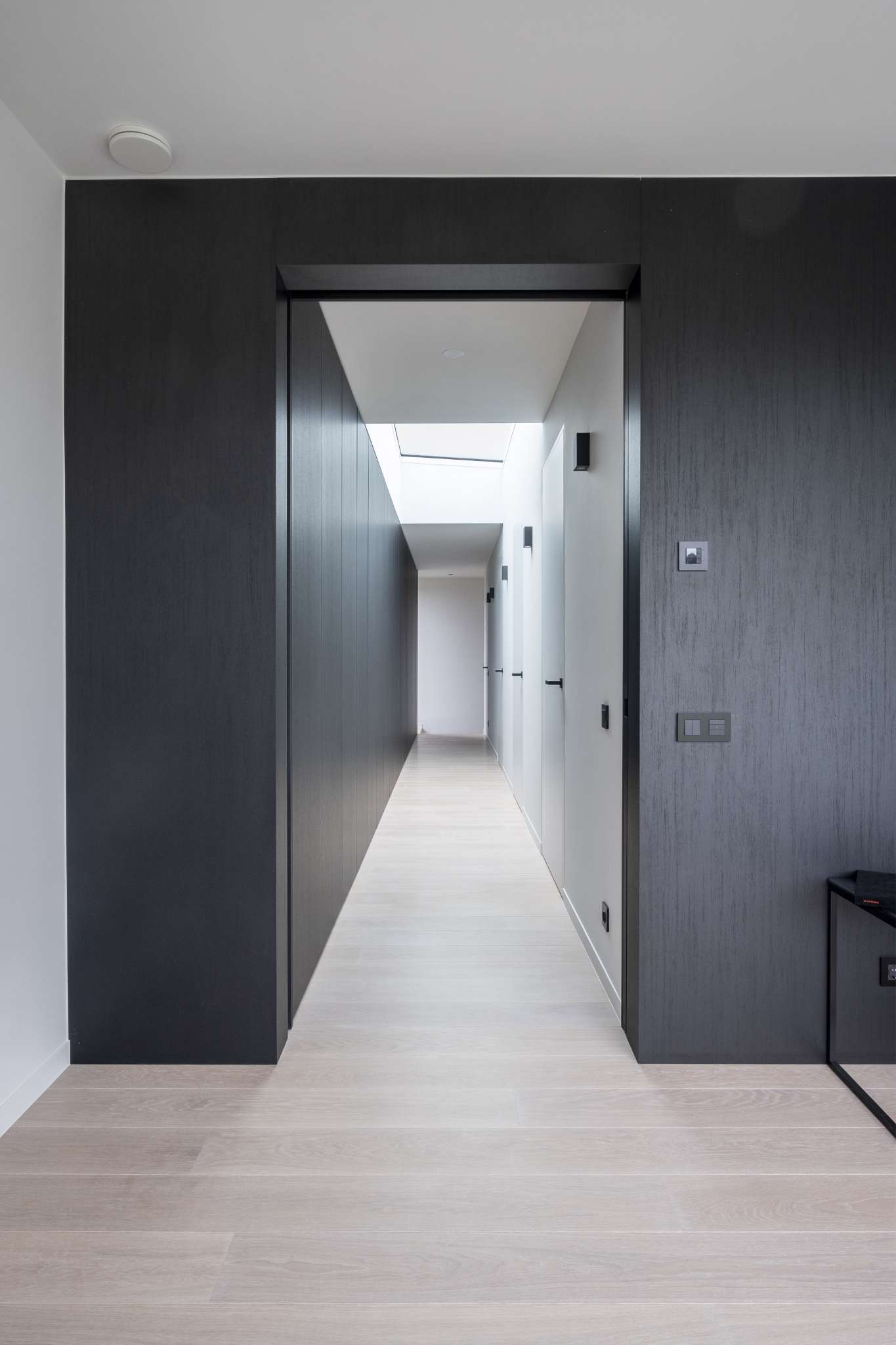 Het project werd gestart met een buitenschrijnwerk op maat, en het is fijn dat we hier de klant met konden overtuigen waardoor we ook het volledige interieur maatwerk mochten uitwerken, van keuken, badkamer en dressing tot binnendeuren en parket.