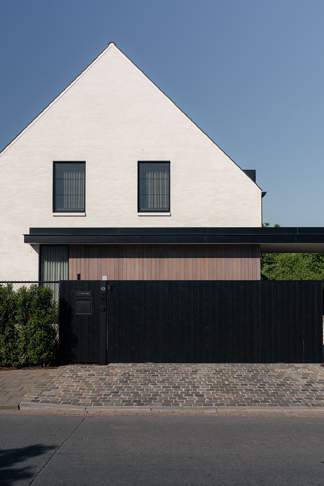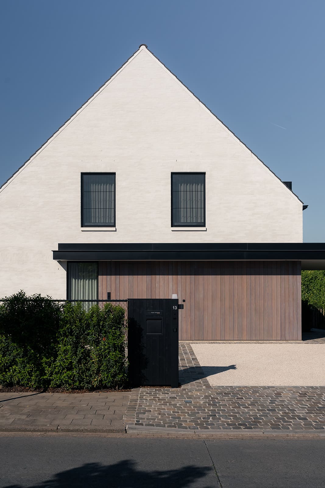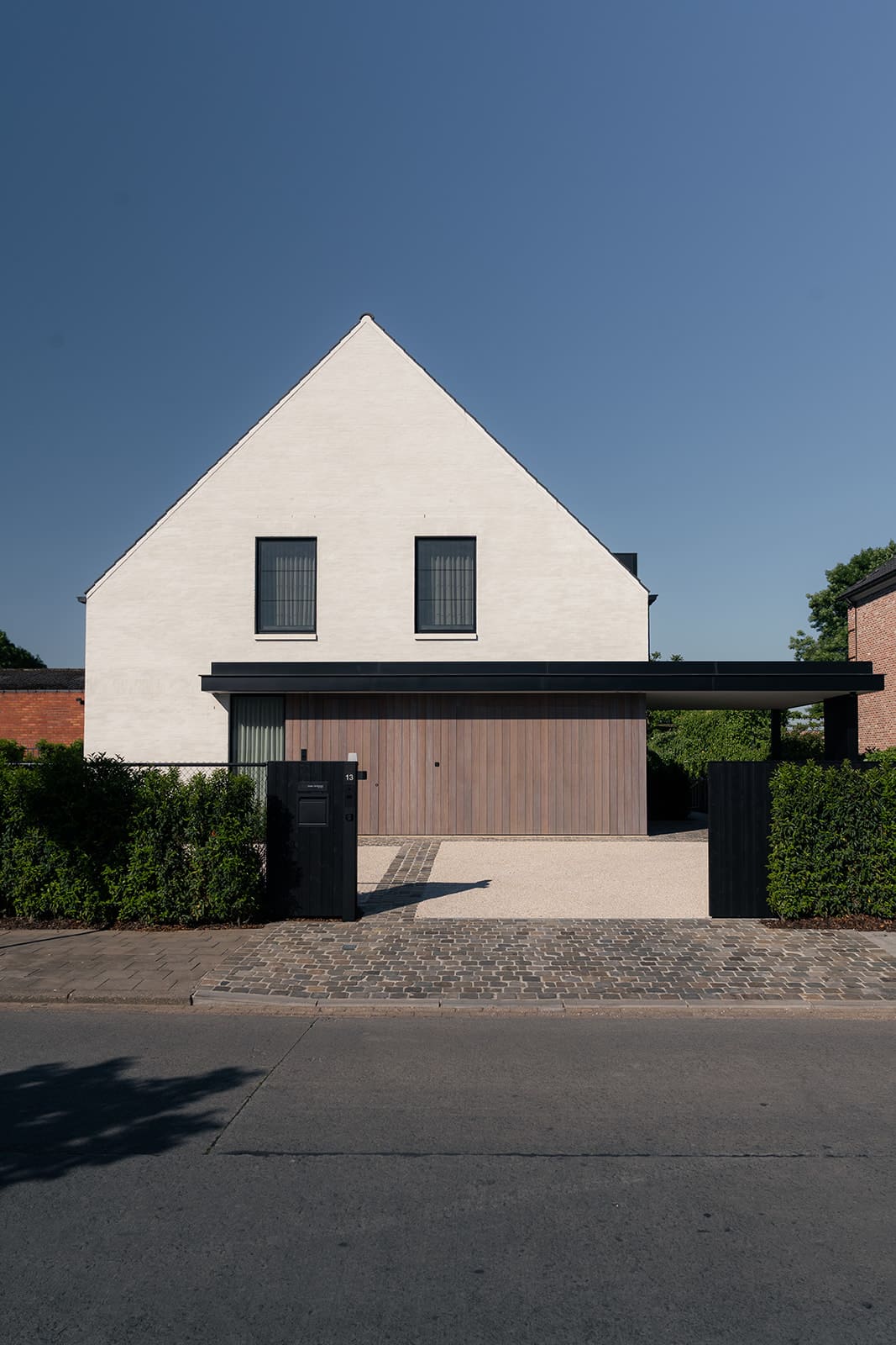 Ook buiten trokken we die stijl volledig door: van het buitenschrijnwerk en de inkompoort tot een volledig ingericht bijgebouw met slaapkamer én een op maat gemaakte buitenkeuken. Alles afgestemd op het architecturaal concept en het vakantiegevoel dat centraal staat.